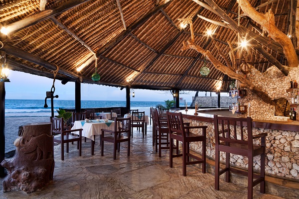Dining and bars The hotel has five restaurants serving local and international cuisine, Seafood, Italian, Indian and Chinese, plus a coffee shop offering snacks. There are six bars situated throughout the hotel. Specifically, the hotel offers: the main Tiwi Restaurant, a coffee shop with garden view, the Watalii Plaza poolside restaurant, the Baharini al la carte seafood restaurant on the beach, La Bella Vita a la carte Italian restaurant, the Sher-e-Punjap a la carte Indian Restaurant, the Kung Fu a la carte Chinese restaurant, the Wasafari Lounge Bar, the Mbuyuni Pool Bar, the Peponi Pool Bar, the Diamonds Night Club.