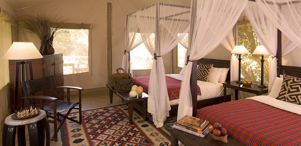 Accommodation There are a total of 50 tents, each with four poster, pillow-top beds, and a veranda overlooking the hippo and crocodile-filled river. Each is superbly furnished with its own private, three-piece bathroom, including a number of "outdoor showers" in select tents. The larger-sized Masai Mara accommodations also feature expanded decks which allow for private dining, a new service.