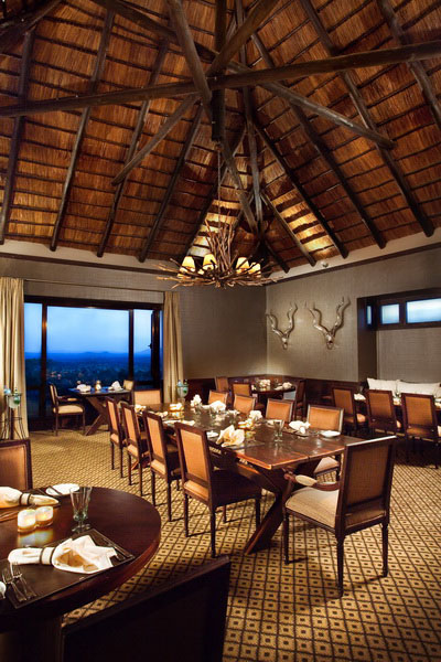 The Four Seasons Safari Lodge luxury safari lodge offers two dining areas, a wine cellar, two bars, a library and a cigar lounge. The lodge also offers private dining in-room and 24-hour room service.