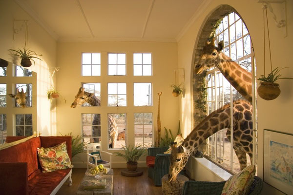 Today, the giraffes wander at leisure within the grounds and have become renowned for sticking their heads through the windows of the house, much to the amusement and amazement of the guests.