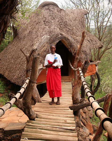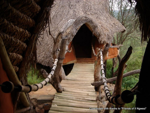 The award winning Eco-Lodge was built in 1996 on a rocky outcrop in an area of the Group Ranch set aside purely for Wildlife conservation. The more than one decade old Il Ngwesi group ranch has been driven by a vision to integrate community development & sustainable environmental management. The core ideal is to use environment as a means to improve the livelihood of the people through eco-friendly activities that conserve wildlife & its habitat & uphold the Maasai culture. This drive led the community to set aside 80% of its land for conservation activities in which a superb up market eco-lodge was set up on a rocky outcrop. The lodge hosted its first guests in December 1996. This was realized with the kind assistance of Lewa Wildlife Conservancy and USAID which funded the construction through Kenya Wildlife Service. The eco lodge built on a local design is constructed from local materials & is solar powered. The income from the venture supports community projects of education, water, health infrastructure, environmental conservation & preservation of culture which are directed at achieving our mission of improving livelihoods of our community members.