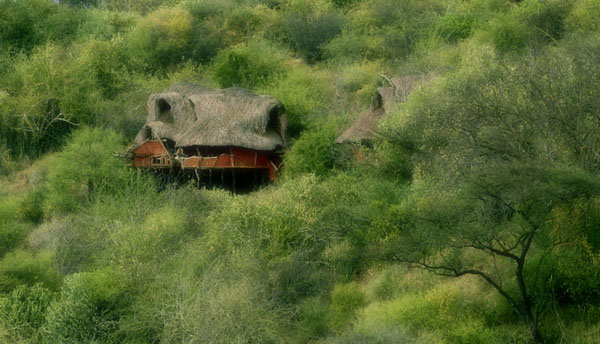 Accommodating consists of six double thatched bandas, remarkable open-plan structures on stilts, incorporating huge branches and open-air bathrooms. Two (nos. 1 and 5) have ‘star beds' which can be pulled out on to decks under the night sky. There's a delightful swimming pool and wonderful views with guaranteed wildlife that includes elephants. Included in the price are night drives, bush walks, riverside breakfasts and climbing the Mukogodo escarpment that faces the lodge also included are visited to the lodges heavily guarded rhino sanctuary, where the first transplant from Lewa, a male called Omni is tame enough for very close encounters through the wire. Extras include a goat dinner at the cultural village and wild dog tracking.