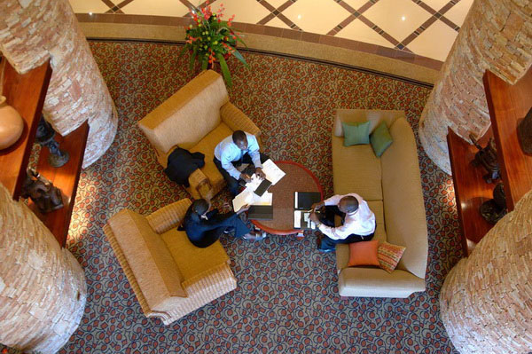 World-class business support The superbly appointed business centre offers all the business support services that you would expect of a 5-star, world-class hotel; and then more. Included are; a range of private boardrooms and office spaces, multi-lingual staff and 24-hour global connectivity Among the services offered are: • PA system, table microphones, cordless microphones, TV/Video/DVD, LCD projector/screen, podium, white boards/flip charts and markers • WiFi connectivity • Delegate pads, pens/pencils and 1-litre mineral water • Modern, modular events furniture, which can be tailored to your specifications. • Business support (secretarial services, photo-copying, WiFi and a full range of global communications) • Registration staff and conference organization support • Floral services • 24-hour generator back-up • Travel desk for onward bookings or local safaris • Concierge services • Limousine and taxi services • ‘Meet and greet' services • A wide range of CEO suites • Extensive secure parking • Health Club and Spa for your delegates • Team-building programmes • VIP helipad.