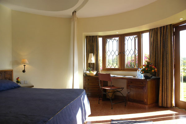 The spacious bedroom is luxuriously appointed with a king-sized double bed with walk-in mosquito net, sumptuous furnishings, dressing area and marble ensuite bathroom. The elegantly appointed sitting room: enjoys panoramic views and is tastefully and relaxingly furnished while offering: a fully stocked mini-bar, digital multi-channel TV and direct dial telephone. The room also features a generous balcony overlooking the grounds. 24-hour room service is available and fruit and wine will be laid out to welcome our guests. The suite is set slightly apart from the rest of the rooms and enjoys its own private access.