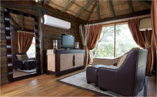 Serena Mivumo River Lodge offers only 12 exclusive rooms. Widely spaced amongst the indigenous forest, each is accommodated in its own wildwood chalet, whose brushwood thatched roof is high vaulted to allow maximum play of light and breeze. Slightly raised on sprung wooden floors, each room features a charming mix of Edwardian crystal chandeliers, marble basins, classic safari antiques and subtly understated modern leather and rattan furniture. The spacious and opulent country-house-inspired bathrooms also feature an exterior shower with wilderness views.