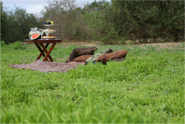 We are expert in arranging breakfasts, lunches, dinners and cocktails in the bush. We have a number of dedicated sites, which are typically presented with tables, safari chairs, ‘bush bar' and a ‘bush kitchen', where a broad range of meats, poultry, fish and vegetables are cooked on-site (supplemented by fresh soups, salads and puddings from our hotel kitchens). In the evenings, ‘sun-downer' cocktails are traditionally served around a campfire and can be followed by a lamp-lit ‘bush dinner'.