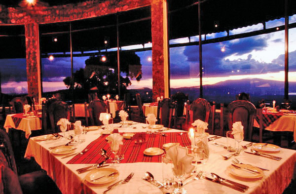 Built within a traditional rondavel, the high-roofed central Ngorongoro Sopa Lodge dining room features enormous windows with stunning views over the crater. Meals are served buffet style and feature local and international cuisine. The Ngorongoro Sopa Lodge also offers its own coffee bar while drinks and snacks can be enjoyed on the pool deck. The panoramic and well-stocked bar centers around a blazing logfire.