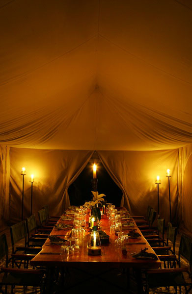 At Rekero Camp, there are no permanent structures. The meeting place throughout the day is a patch of grass in front of an open-fronted canvas mess tent which stands under tall indigenous trees, overlooking the Talek River. This is the hub for all camp activities and it is a fun place to be. Meals, camp fires, sundowners, cocktails, story-telling are all enjoyed from here, unless rain or wind forces the use of the spacious mess tent which has a simple bar with all the essential safari drinks.