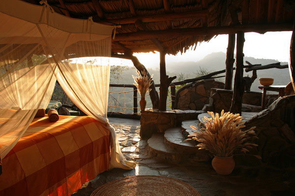 • Each cottage consists of a large main bedroom, en suite bathroom (with flush toilet, bath and shower with hot running water) and outdoor veranda / star bed area.