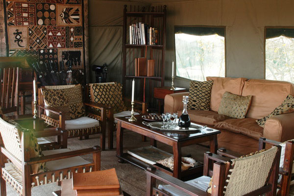 The Sanctuary Kusini Camp dining area, lounge and library are housed in the main public area, which affords spectacular views from its wooden deck. Between definitive wildlife encounters and classic African adventures, you may gather for elegant candlelit meals and safari tales in the dining tent, have 'sundowner' cocktails or picturesque banquets atop a nearby kopje, or spend contemplative hours in the intimate library lounge, taking stock of what you have seen.