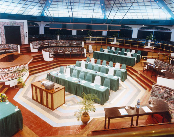 The conference room has a combined capacity of four hundred people. It can be separated into Baraza I, Baraza II and Baraza III, each with seating capacities ranging from one hundred to two hundred persons. It is equipped with its own secretariat and rest rooms.
