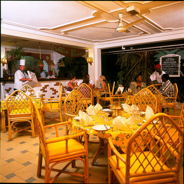 The Pavilion Restaurant is the main dining restaurant and serves buffet style cuisine at breakfast, lunch and dinner. Cuisine includes continental, Asian and Indigenous African with 14 themed dinners over a fortnight. Entertainment is provided by live bands, traditional dancers and acrobats.
