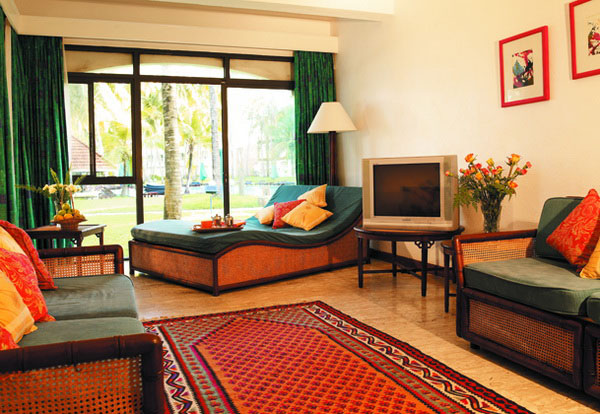Sea Front rooms have an unimpeded view of the expansive tropical waters of the Indian Ocean beyond the landscaped greens and swaying palms.
