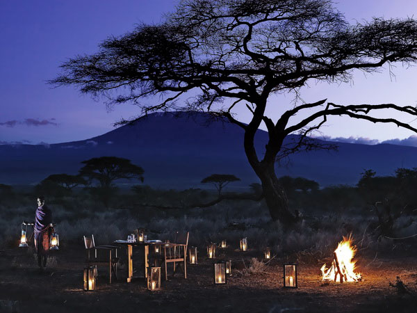 Lunch is served under a 200 year-old Tamarind tree where you may watch the elephants at the watering hole. Dinner is served in the restaurant lounge area, from 7-9 pm. After dinner, you can relax and enjoy the atmosphere of Tsavo by swapping stories of your days adventures around the campfire or watch the animals by "night" from the observation tower.