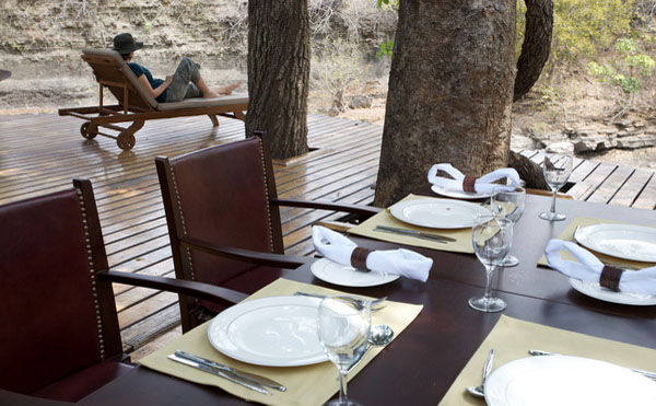Slightly raised on timber decks above the river, the open-sided dining room offers a selection of exclusive seating areas, an elegant library, a charming lounge and a safari bar. All overlook the river with uninterrupted views of the hippos, elephants and crocodiles that congregate on its banks.