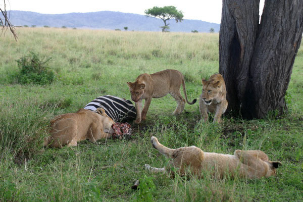 The Serengeti Sopa Lodge Serengeti luxury Safari wildlife highlights: wildebeest, zebra, Thomson's gazelle, lion, spotted hyena, hunting dog, cheetah, black rhino, elephant, giraffe, buffalo, topi, eland, jackal and otter. Birds: over 350 recorded species including 34 raptors.