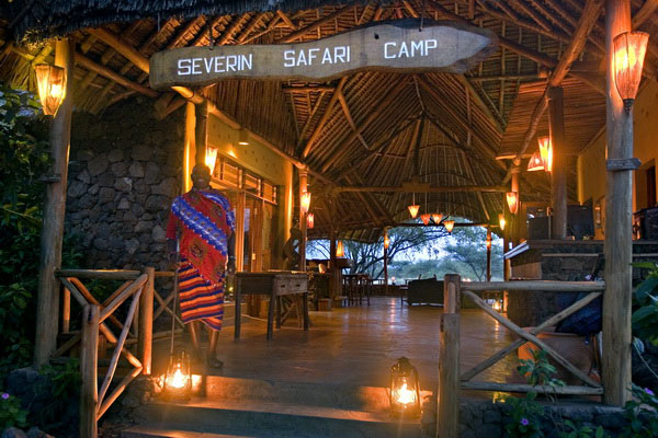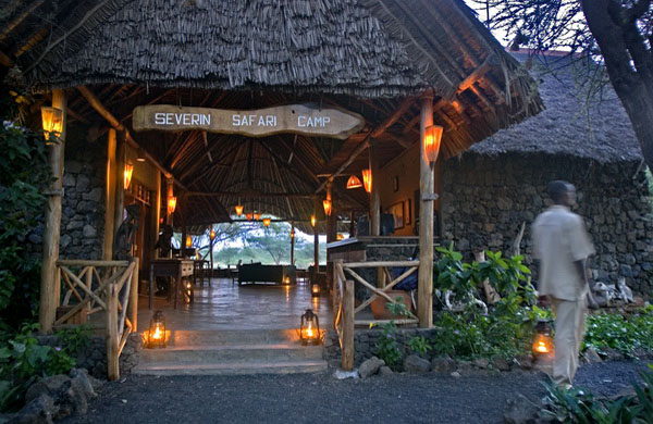 Severin Safari Camp stands amid 25 acres of savannah, in one of the most beautiful areas of Tsavo West National Park, within easy reach of famous Mzima Springs. Unfenced, the camp offers 27 octagonal tents, all with extensive private verandahs. The camp overlooks two natural water holes and offers an open-sided dining room and bar.