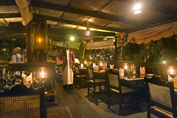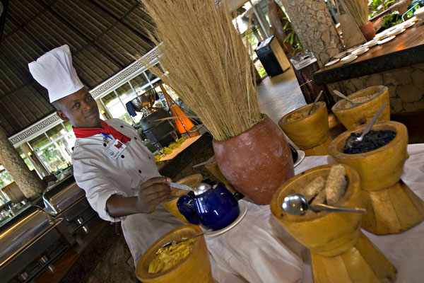 The hotel draws its fruit, vegetables and eggs from its own organic farm. Most meals are served in the main Kisima Restaurant, which also features themed buffet suppers. The Kisima Pool Grill offers light lunches and snacks poolside. The Flame Tree Bistro offers pizza and pasta. The Imani Dhow is an a la carte seafood restaurant. The Safari bar and swing bars overlook the grounds and beach. The Johari Roof Terrace offers seasonal events and sundowners. The hotel offers a weekly entertainment program, stylish candlelight & gala dinners with International and African themes, varied after dinner entertainment which includes live music, acrobatic shows, fashion shows, Maasai warriors and traditional dance groups.