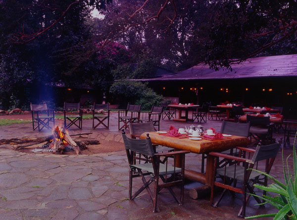 The central dining room overlooks the plains and serves lavish buffet meals. There is also an exterior dining terrace and campfire area. Both interior and exterior bar services are offered, and drinks can be delivered to the tents.