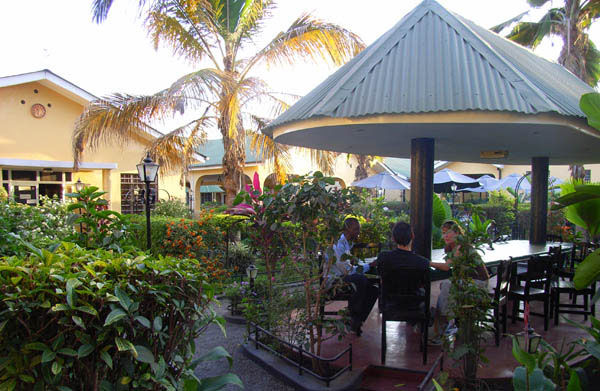 The hotel has a large airy dining area set in pleasant gardens with both indoor and outdoor bars.