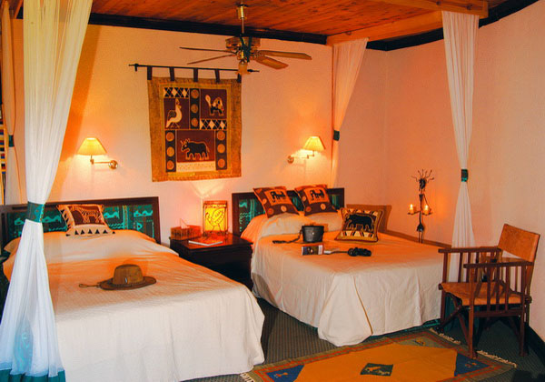 The lodge offers 75 spacious rooms, all with a private lounge and mini bar. Each fully-carpeted room offers 2 queen-size beds with mosquito nets, ceiling fans and a private balcony. 4 rooms are suited to the physically challenged. Services include: laundry, hair dryer, mini bar).