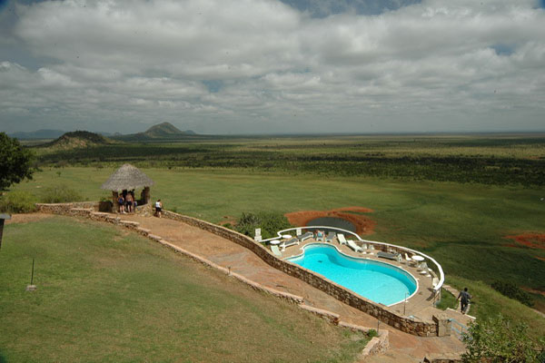 Tsavo East National Park is easily accessible by air and road, and is approximately 160 kilometers from Mombasa, and 326 kilometers from Nairobi. Voi Safari Lodge, built in 1969, is strategically situated in one of the World's Largest Game Park - the Tsavo East National Park. Voi Safari Lodge stands high above the town of Voi overlooking a vast expanse of the African Bush. The lodge is easily reached by car from Voi Town (on the main Mombasa-Nairobi Highway). There is an airstrip 4 km from the lodge.