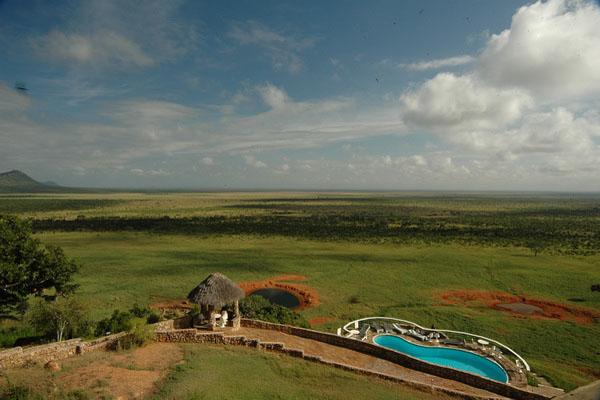 Voi Safari Lodge stands high above the town of Voi overlooking a vast expanse of the African Bush. Just 160km from Mombasa City, the lodge is within easy access to both the eastern and western portions of the vast Tsavo ecosystem - one of the World's Largest Game Parks. Strategically situated, overlooking three waterholes, guests can simply watch the herds of wild animals roam beneath as they enjoy the ever-changing panorama of African wilderness unfold.