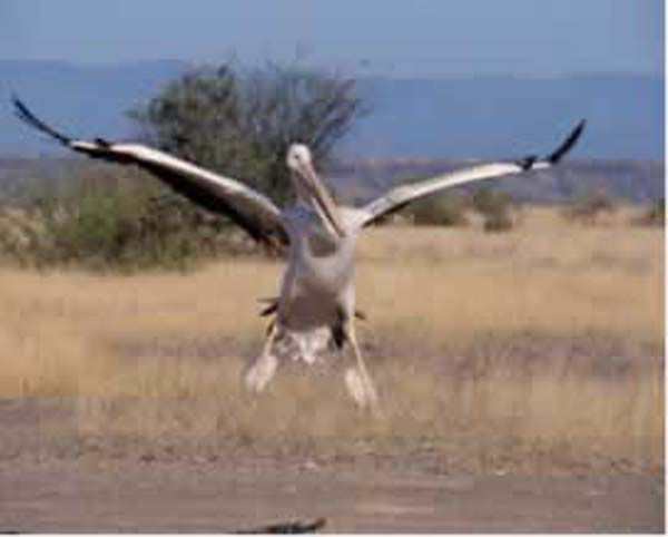 Common ostrich are plentiful on the lakeshores as well as blacksmith's plovers - both of which nest here. Around the reserve's three permanent swamps, black-headed herons and hadada and sacred ibis abound, but due to its high salinity the lake attracts only a few water birds, such as Cape teals, Egyptian geese, black-necked grebes, hamerkops and storks. Most easily spotted are the brilliant blue lilac-breasted rollers and the magnificent grey-crowned cranes.