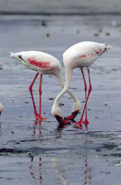 Lying in a shallow depression at the base of the western wall of the eastern arm of the Rift Valley, Lake Manyara typically shimmers in a lilac and gold heat haze, sometimes streaked pink with thousands of flamingos. Backed by a narrow band of forest, it rises to the dramatically sheer red and brown cliffs of the Mto wa Mbu Escarpment. The Park includes not only a substantial portion of the lake and its shores but also large areas of ground-water forest with giant fig and mahogany trees alternating with acacia woodland and open. The name is derived from the Maasai word for the Euphorbia tirucalli bush, which the tribesmen plant as a living stockade to keep their cattle from straying.