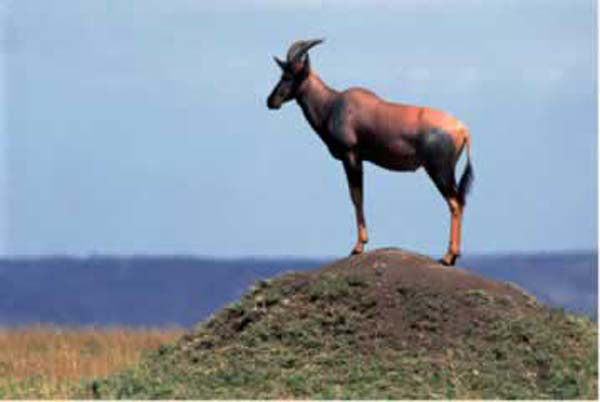 The rest of the wildlife cast Historically teaming with wildlife, the Mara is famous for the large herds of elephant and buffalo that meander its plains; also for the fat pods of hippo that wallow in its mud-brown rivers. Other stars include the distinctive Masai giraffe, plum-coloured topi, Coke's hartebeest, Grant's and Thomson's gazelle, zebra, impala, Kirk's dik-dik, bushbuck, waterbuck and red duiker. The Reserve also boasts plentiful Nile crocodile, monitor lizard, baboon, vervet, blue and red-tailed monkeys, nocturnal bush babies, and tree hyrax.
