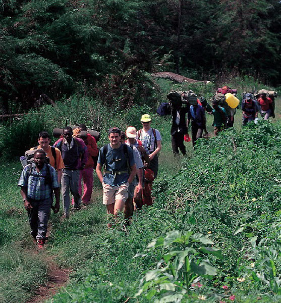 Do I need a guide? Guides are not compulsory but unless you are an experienced mountain walker (and can use a map and compass), use of a guide is recommended: a) to improve your chances of getting to the top b) to avoid altitude sickness c) to help with your equipment. Which guide? Guides (and porters) should be fully licensed and approved by KWS and should carry a KWS authorization card to prove this (this card also entitles them to a 50% reduction on their Park fees). Note: it is recommended that you hire your guides from the local rural community and insist on seeing a KWS authorization card since experience has proved that ‘guides' engaged in major cities or without possession of the KWS authorization card may prove to be totally inexperienced. Your guide, once engaged, can also hire reputable porters on your behalf. What is the difference between a guide and a porter? Porters carry loads; guides show the way (and may require a porter to carry their own load). How much do they cost? Costs vary according to route and you should agree a price before you start. Also, if you ascend the mountain via one route and descend via another, you will be expected to pay for your guide's transport costs back to his/her starting point. Tips: if you wish to tip, the accepted rate is: an extra day's wages for every porter and guide (based on a 5-day trek). Tipping disputes have marred the end of many an expedition. To avoid dispute make it clear to guides and porters that good service will be rewarded by a specific tip to be paid at the end of the climb. Porters: will carry up to 18kg for a three day trip or 16kg for a longer trip (excluding the weight of their own food and equipment).